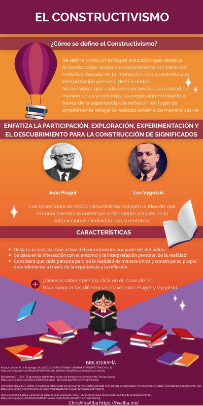 Araya, V., Alfaro, M., & Andonegui, M. (2007). CONSTRUCTIVISMO: ORIGENES Y PERSPECTIVAS (Vol.13). https://drive.google.com/file/d/1ePGBPhOlDzGK_xW20nU-1M2ghWmcqchz/view?usp=sharing Díaz Barriga, F. (1993). El aprendizaje significativo desde una perspectiva constructivista. Revista Educar. https://drive.google.com/file/d/1I8WB7sOnuFu0r-_f3SJ8vYlLopGP80x/view?usp=sharing Hernández Requena, S. (2008). El modelo constructivista con las nuevas tecnologías: aplicado en el proceso de aprendizaje. Revista de Universidad y Sociedad del Conocimiento, 5(2). https://drive.google.com/file/d/1LkGHjxH91VmsDZWwMy5UFrlGCQpPz2ve/view?usp=sharing Ortiz Granja, D. & Sophia, Colección de Filosofía de la Educación. (2015). El constructivismo como teoría y método de enseñanza (Vol. 19). https://drive.google.com/file/d/1MdY4r8P-kZA3xFNLblUhDc0TuUF5qPY/view?usp=sharing