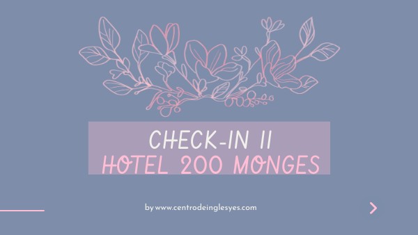 Recepcionista: Good afternoon, welcome to Hotel 200 Monges. How can I help you? Recepcionista: Buenas tardes, bienvenido al Hotel Sunrise. ¿En qué puedo ayudarle? Huésped: Good afternoon. I have a reservation. Huésped: Buenas tardes. Tengo una reserva. Recepcionista: Great. Can I have your name, please? Recepcionista: Muy bien. ¿Me puede dar su nombre, por favor?