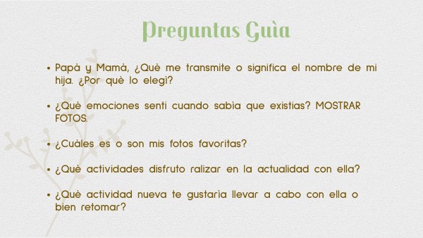 - Papà y Mamà, ¿Què me transmite o significa el nombre de mi hija. ¿Por què lo elegì?
