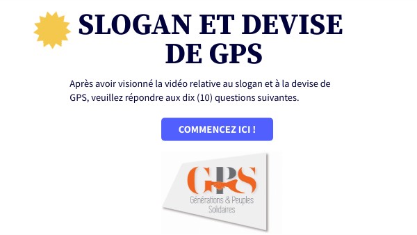 Après avoir visionné la vidéo relative au slogan et à la devise de GPS, veuillez répondre aux dix (10) questions suivantes.
