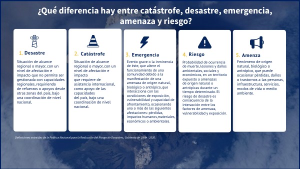 Definiciones extraídas de la Política Nacional para la Reducción del Riesgo de Desastres, Gobierno de Chile - 2020.