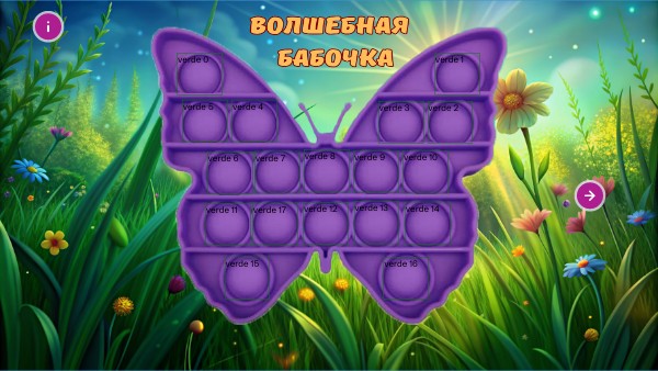 На поляне поселилась волшебная бабочка. На её крылышках спрятаны предметы, в названии которых есть звук [ч]. Играй с бабочкой, лопай шарики и называй слова.