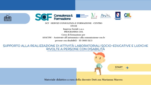 SCF -SERVIZI CONSULENZA E FORMAZIONE- CENTRO STUDI Impresa Sociale s.a.s. PROGRAMMA GOL Corso di formazione per ASACOM - Assistente all'autonomia e alla comunicaizone con le persone con disabilità - ID 3883 Ed.3