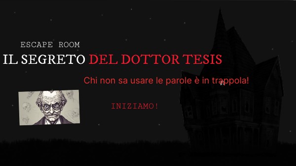 Un gruppo di studenti, ignari del destino che li attende, si ritrova nella casa del dottor Tesis. Il professore li ha convocati per un presunto recupero, ma ben presto l'atmosfera cambia. Le porte e le finestre della casa si chiudono e una voce sinistra risuona nell'aria: "Benvenuti nel mio regno! Per uscire, miei cari studenti, dovrete superare delle prove e dimostrare di conoscere i testi argomentativi e la griglia di valutazione. Solo i più abili sopravviveranno! Se volete essere tra questi, iniziate il vostro percorso e ricordate: le parole salvano!