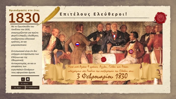 Με το Πρωτόκολλο του Λονδίνου του 1830, αναγνωρίζονταν για πρώτη φορά η ύπαρξη, ελεύθερου, ανεξάρτητου ελληνικού κράτους, αν και μικροσκοπικού. Εντυπωσιακό είναι ότι δεν υπήρχαν αντιπρόσωποι των Ελλήνων και της Οθωμανικής Αυτοκρατορίας, αν και οι αποφάσεις των ευρωπαϊκών δυνάμεων τους αφορούσαν άμεσα.