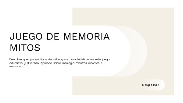 Descubre y empareja tipos de mitos y sus características en este juego educativo y divertido. Aprende sobre mitología mientras ejercitas tu memoria.