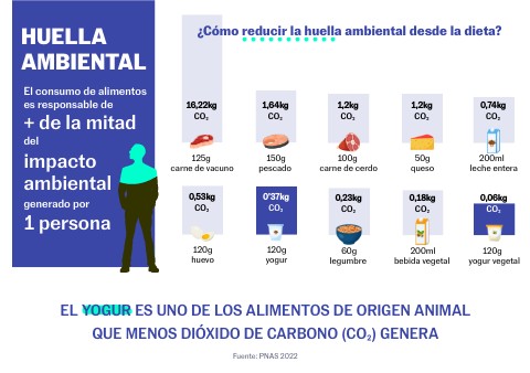 El yogur es uno de los alimentos de origen animal que menos dióxido de carbono (CO₂) genera