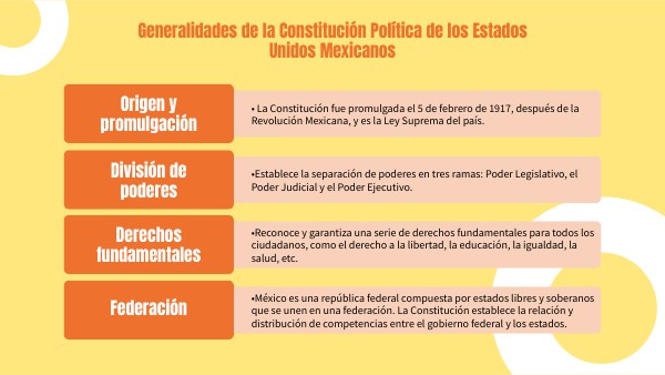 • La Constitución fue promulgada el 5 de febrero de 1917, después de la Revolución Mexicana, y es la Ley Suprema del país.