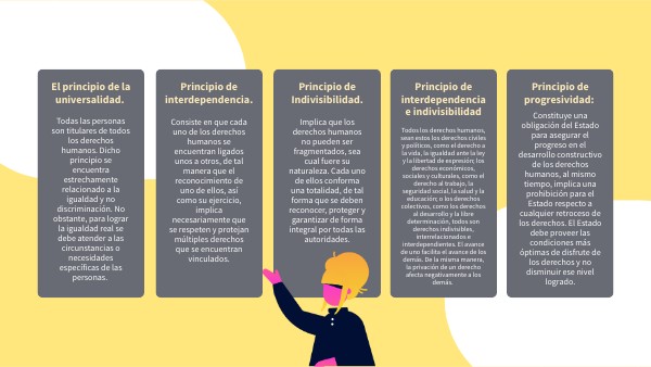 Todos los derechos humanos, sean estos los derechos civiles y políticos, como el derecho a la vida, la igualdad ante la ley y la libertad de expresión; los derechos económicos, sociales y culturales, como el derecho al trabajo, la seguridad social, la salud y la educación; o los derechos colectivos, como los derechos al desarrollo y la libre determinación, todos son derechos indivisibles, interrelacionados e interdependientes. El avance de uno facilita el avance de los demás. De la misma manera, la privación de un derecho afecta negativamente a los demás.