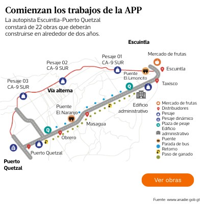 La autopista Escuintla-Puerto Quetzal constará de 22 obras que deberán construirse en alrededor de dos años.