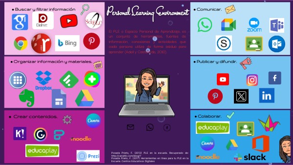 Posada Prieto, F. (2012) PLE en la escuela. Recuperado de: http://canaltic.com/blog/? Posada Prieto, F. (2017) Herramientas en línea para tu PLE en la Escuela. Centros Educativos Digitales