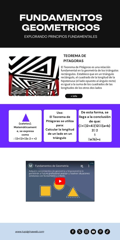 El Teorema de Pitágoras es una relación fundamental en la geometría de los triángulos rectángulos. Establece que en un triángulo rectángulo, el cuadrado de la longitud de la hipotenusa (el lado opuesto al ángulo recto) es igual a la suma de los cuadrados de las longitudes de los otros dos lados