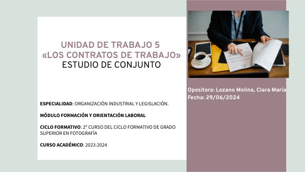 ESPECIALIDAD: ORGANIZACIÓN INDUSTRIAL Y LEGISLACIÓN. MÓDULO FORMACIÓN Y ORIENTACIÓN LABORAL CICLO FORMATIVO: 2º CURSO DEL CICLO FORMATIVO DE GRADO SUPERIOR EN FOTOGRAFÍA CURSO ACADÉMICO: 2023-2024