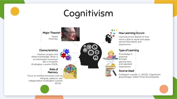 Codington-Lacerte, C. (2023). Cognitivism (psychology). Salem Press Encyclopedia.