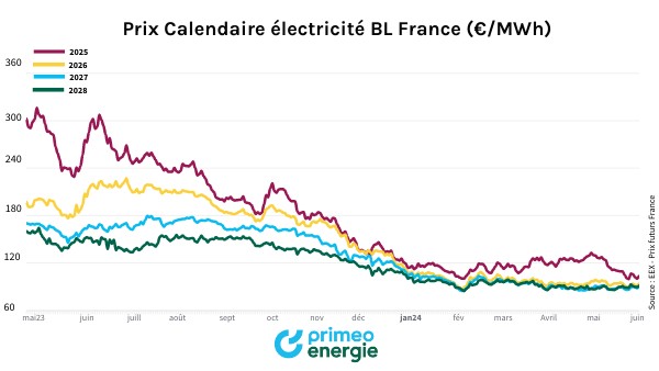 Prix Calendaire électricité BL France (€/MWh)
