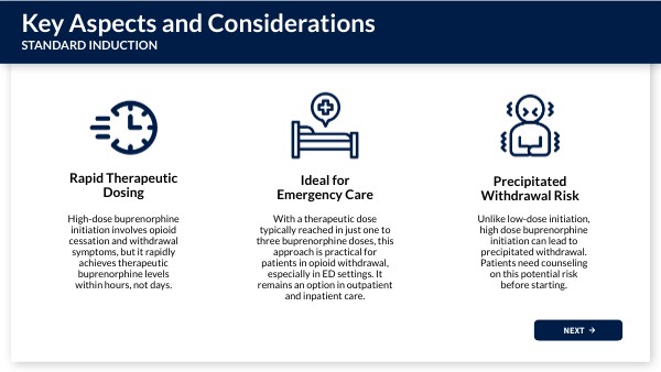 With a therapeutic dose typically reached in just one to three buprenorphine doses, this approach is practical for patients in opioid withdrawal, especially in ED settings. It remains an option in outpatient and inpatient care.