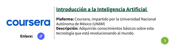 Plaforma: Coursera, impartido por la Universidad Nacional Autónoma de México (UNAM) Descripción: Adquirirás conocimientos básicos sobre esta tecnología que está revolucionando al mundo.