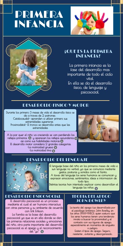 La primera infancia es la fase del desarrollo mas importante de todo el ciclo vital.En ella se da el desarrollo fisico, de lenguaje y psicosocial.