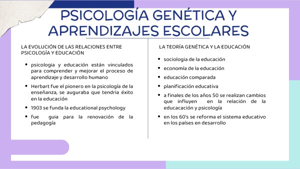 - El uso de la teoría genética como marco de referencia para establecer los objetivos educativos ha hecho tomar conciencia de la necesidad de vincular los aprendizajes escolares y los procesos de desarrollo y de la estrecha relación que existe entre ambos.