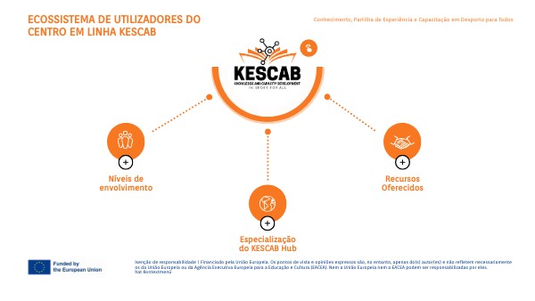 O projeto Europeu KESCAB Online Hub visa desenvolver uma plataforma online de nível mundial para apoiar os parceiros do projeto, as suas partes interessadas e o movimento mais amplo do Desporto para Todos e da atividade física através de uma cooperação intersectorial reforçada e de uma rede de serviços de aconselhamento em Educação, Desporto e Tecnologia. Iniciado em janeiro de 2024, o projeto deverá estar concluído em dezembro de 2025. No entanto, foi elaborado um plano de sustentabilidade para garantir a utilização contínua do KESCAB Online Hub para além desta data. Este resumo infográfico visa apresentar as principais informações e objectivos do projeto e representar visualmente o ecossistema e todas as organizações que