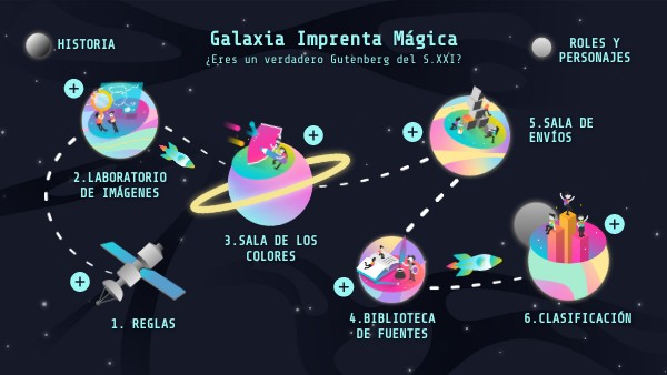 En un Galaxia llamada Imprenta Mágica, donde la calidad de impresión es vital para la comunicación y el arte, los aprendices de imprenta deben enfrentarse a desafíos para convertirse en Maestros de Imprenta. Cada aprendiz recibirá misiones que implican la preparación de archivos para la gran Imprenta Real. Completar con éxito cada misión les acercará a obtener el título de Maestro, convirtiéndose en el Gutenberg del S.XXI.