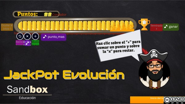 Haz clic sobre el "+" para sumar un punto y sobre la "x" para restar.