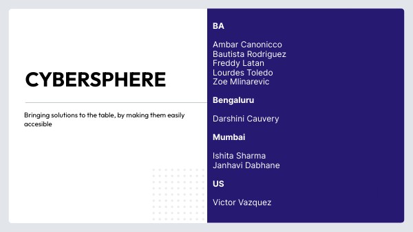BA Ambar Canonicco Bautista Rodriguez Freddy Latan Lourdes Toledo Zoe Mlinarevic Bengaluru Darshini Cauvery Mumbai Ishita Sharma Janhavi Dabhane US Victor Vazquez