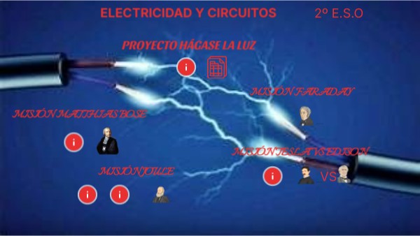 Bienvenidos al Proyecto "Hágase la Luz", donde aprenderemos sobre el origen de la electricidad, sus elementos principales y la importancia que tiene en casi todo lo que hacemos en nuestro día a día. Investigaremos, además, sobre la electrónica, y cómo nos ayuda a regular esa corriente eléctrica a un nivel inferior pero con una gran utilidad para nuestra vida. De la mano de los grandes maestros de la electricidad, Matthias Bose, Joule, Faraday, Edison y Tesla, nos embarcaremos en un viaje que nos hará notar la fuerza de la potencia eléctrica y veremos su utilidad en nuestra propia casa, para darnos cuenta del largo viaje que la energía tiene que recorrer para encender una sola de nuestras bombillas. Para ello, iremos superando diferentes misiones, algunas de forma individual y otras gracias a la ayuda de nuestros compañeros. Iremos sumando puntos en cada una de ellas, para conseguir diferentes recompensas que podrán ser utilizadas en el examen de este tema. Con todo ello, y gracias a nuestro entrenamiento y nuestros compañeros, conseguiremos llegar al final de esta aventura.