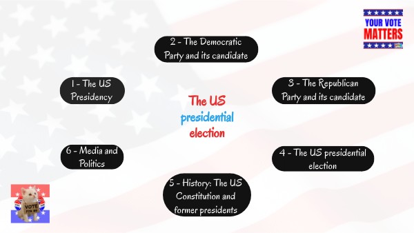 Click on the image, read the articles, the infographic or watch the video to learn more about the US presidential elections. Divide the work within your group and sum up your document so that you can present it to your teammates.