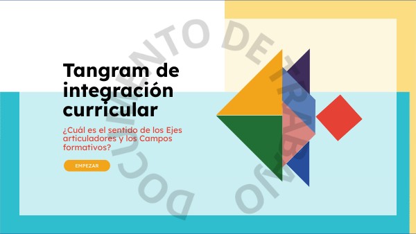 Imagina que la figura a armar es una situación o problema; estos pueden ser tan diversos y particulares que, a pesar de abordarse con los mismos Ejes articuladores y Campos formativos, los resultados pueden ser diferentes. Tú decides las combinaciones a realizar, de acuerdo con lo que se requiere.