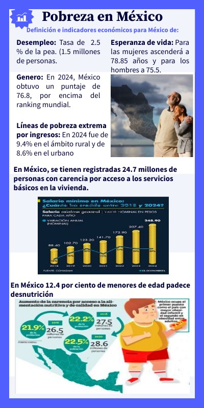 Líneas de pobreza extrema por ingresos: En 2024 fue de 9.4% en el ámbito rural y de 8.6% en el urbano