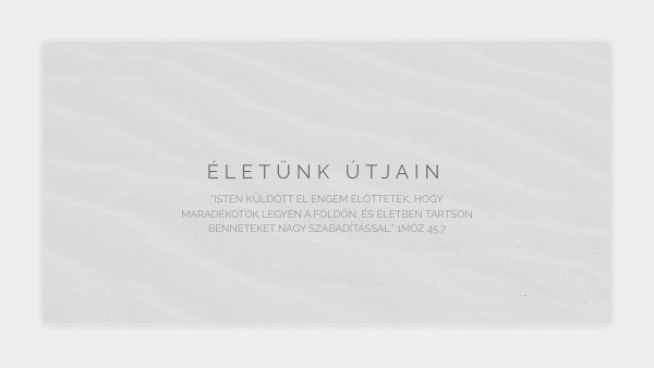 "ISTEN KÜLDÖTT EL ENGEM ELŐTTETEK, HOGY MARADÉKOTOK LEGYEN A FÖLDÖN, ÉS ÉLETBEN TARTSON BENNETEKET NAGY SZABADÍTÁSSAL." 1MÓZ 45,7
