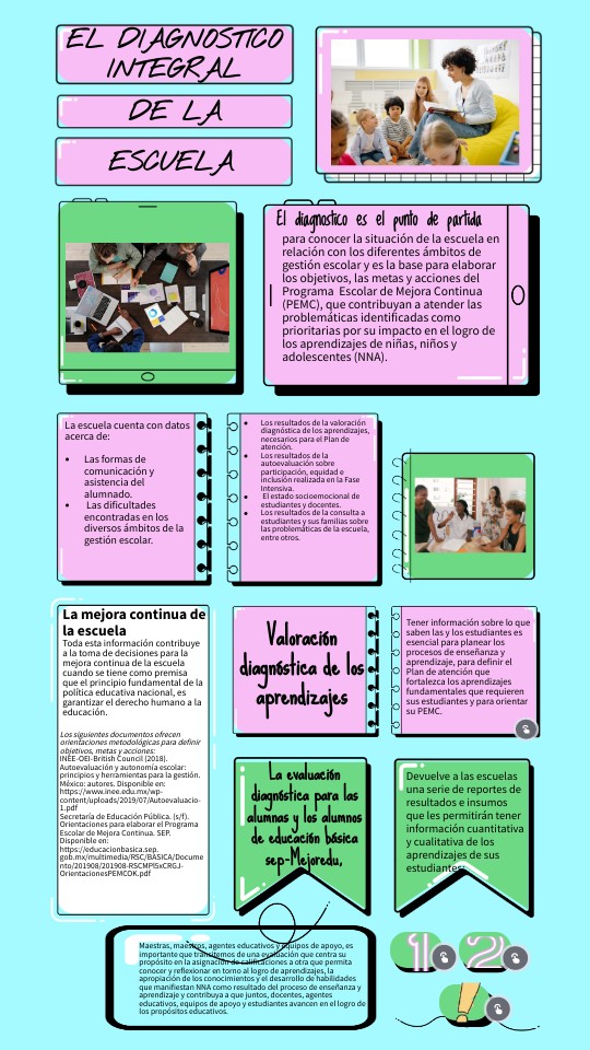 Fuentes de consulta:Consejo Técnico Escolar y Taller Intensivo de Formación Continua para Docentes PRIMERA SESIÓN ORDINARIA. (s.f.). "Diagnóstico Integral de la Escuela Ciclo Escolar 2022-2023". Disponible en: plataforma clasroom: https://classroom.google.com/c/Njk1NDU4MDc4NjAz/a/Njk1NDU4MDc4NjE3/details