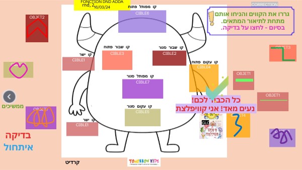 גררו את הקווים והניחו אותם .מתחת לתיאור המתאים .בסיום - לחצו על בדיקה