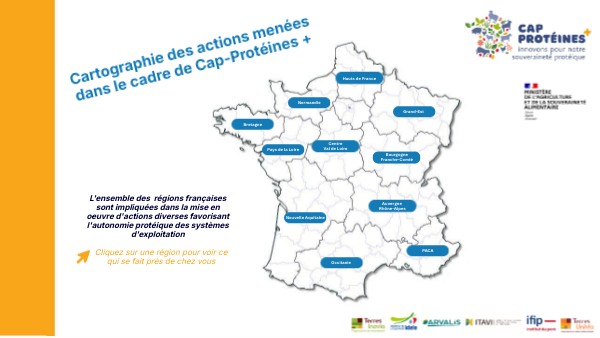 L'ensemble des régions françaises sont impliquées dans la mise en oeuvre d'actions diverses favorisant l'autonomie protéique des systèmes d'exploitation