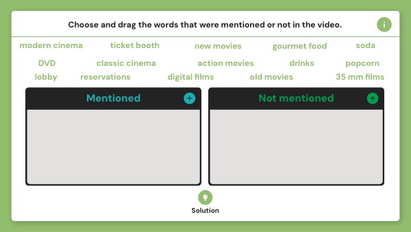 Choose and drag the words that were mentioned or not in the video.