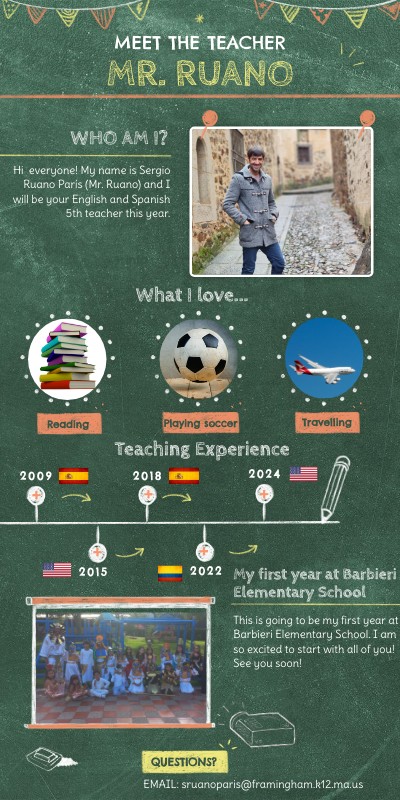 Hi everyone! My name is Sergio Ruano París (Mr. Ruano) and I will be your English and Spanish 5th teacher this year.