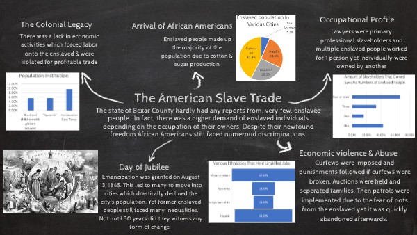 The state of Bexar County hardly had any reports from, very few, enslaved people . In fact, there was a higher demand of enslaved individuals depending on the occupation of their owners. Despite their newfound freedom African Americans still faced numeroud discriminations.