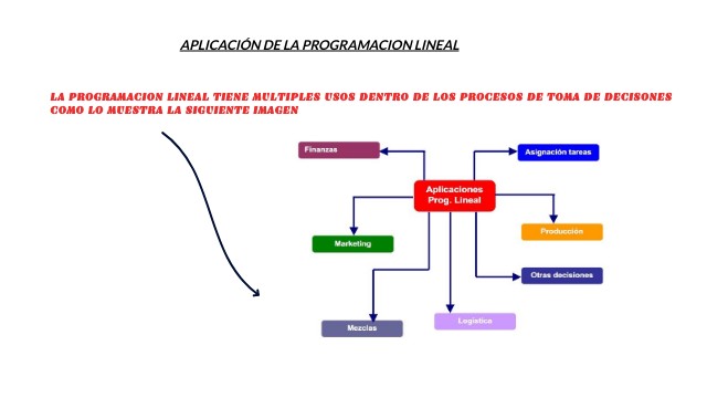 LA PROGRAMACION LINEAL TIENE MULTIPLES USOS DENTRO DE LOS PROCESOS DE TOMA DE DECISONES COMO LO MUESTRA LA SIGUIENTE IMAGEN
