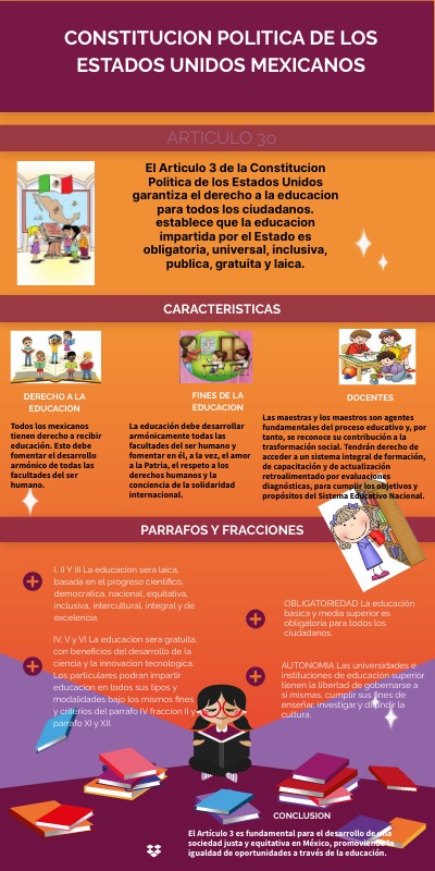 El Articulo 3 de la Constitucion Politica de los Estados Unidos garantiza el derecho a la educacion para todos los ciudadanos. establece que la educacion impartida por el Estado es obligatoria, universal, inclusiva, publica, gratuita y laica.