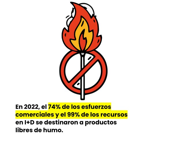 En 2022, el 74% de los esfuerzos comerciales y el 99% de los recursos en I+D se destinaron a productos libres de humo.