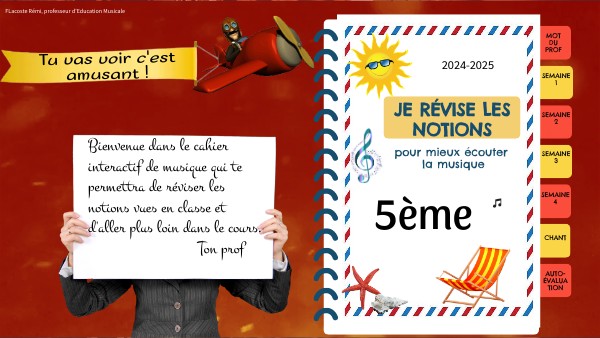 Bienvenue dans le cahier interactif de musique qui te permettra de réviser les notions vues en classe et d'aller plus loin dans le cours. Ton prof