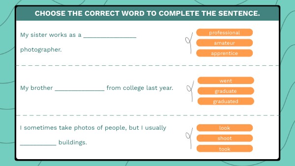 choose the correct word to complete the sentence.
