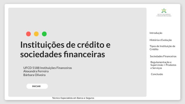 As instituições de crédito e sociedades financeiras desempenham um papel fundamental na economia moderna, onde vão proporcionar os recursos necessários para o funcionamento das empresas e o bem-estar dos indivíduos. Este projeto visa explorar a história, tipos, regulamentação, produtos e inovações dessas instituições.yo