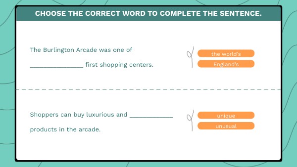 Shoppers can buy luxurious and _____________ products in the arcade.