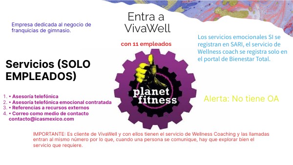 IMPORTANTE: Es cliente de VivaWell y con ellos tienen el servicio de Wellness Coaching y las llamadas entran al mismo número por lo que, cuando una persona se comunique, hay que explorar bien el servicio que requiere.