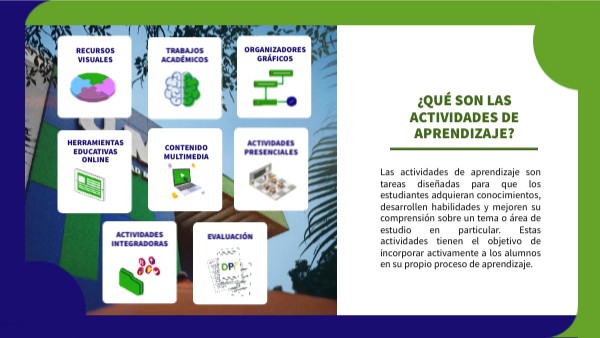 Las actividades de aprendizaje son tareas diseñadas para que los estudiantes adquieran conocimientos, desarrollen habilidades y mejoren su comprensión sobre un tema o área de estudio en particular. Estas actividades tienen el objetivo de incorporar activamente a los alumnos en su propio proceso de aprendizaje.