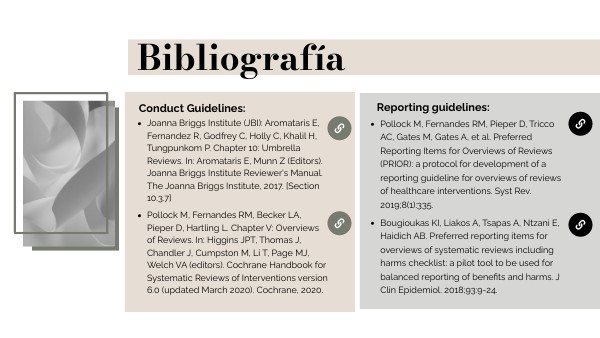 Pollock M, Fernandes RM, Becker LA, Pieper D, Hartling L. Chapter V: Overviews of Reviews. In: Higgins JPT, Thomas J, Chandler J, Cumpston M, Li T, Page MJ, Welch VA (editors). Cochrane Handbook for Systematic Reviews of Interventions version 6.0 (updated March 2020). Cochrane, 2020.