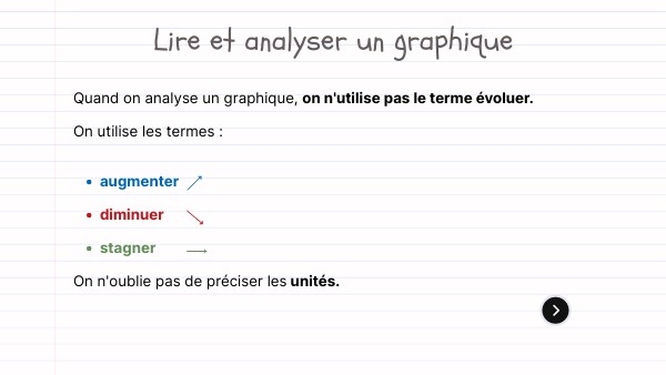 Quand on analyse un graphique, on n'utilise pas le terme évoluer. On utilise les termes :