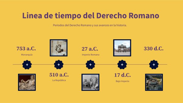La RepúblicaDe la Ley de las XII tablas al fin de la República. Inicia en el año 510 a.C. y termina en el 27 a.C. Las Leyes, los Plebicitos, el Senadoconsulto, los Edictos y la Jurisprudencia sirven de fuentes del derecho